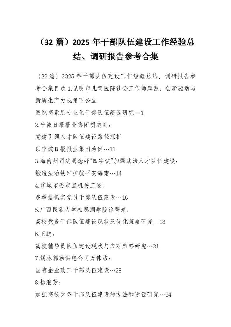 首页精选范文(32篇)2025年干部队伍建设工作经验总结、调研报告参考合集