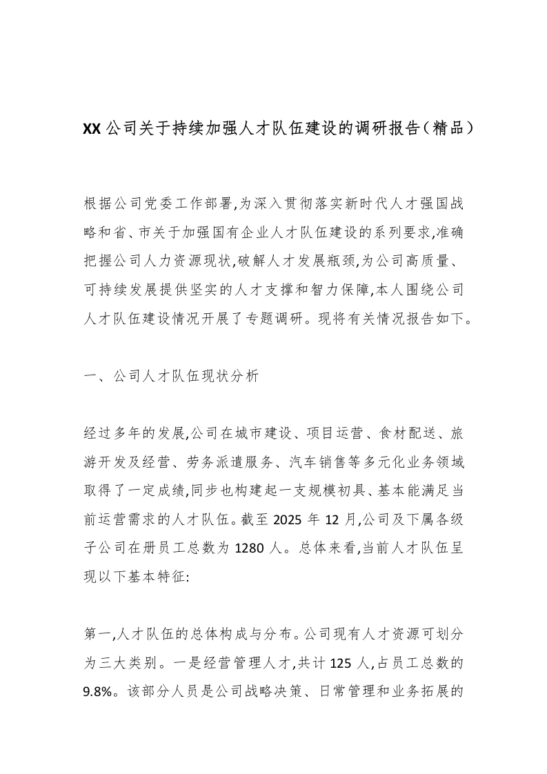 XX公司关于持续加强人才队伍建设的调研报告(精品)_副本