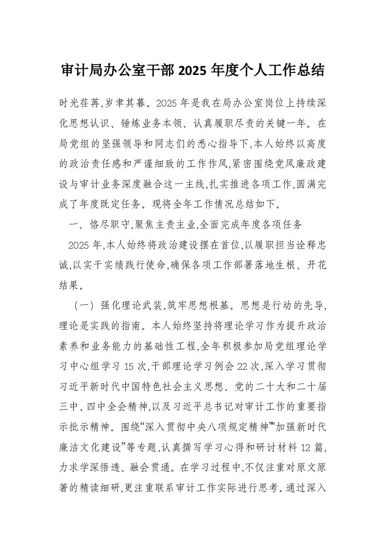 首页工作文档审计局办公室干部2025年度个人工作总结