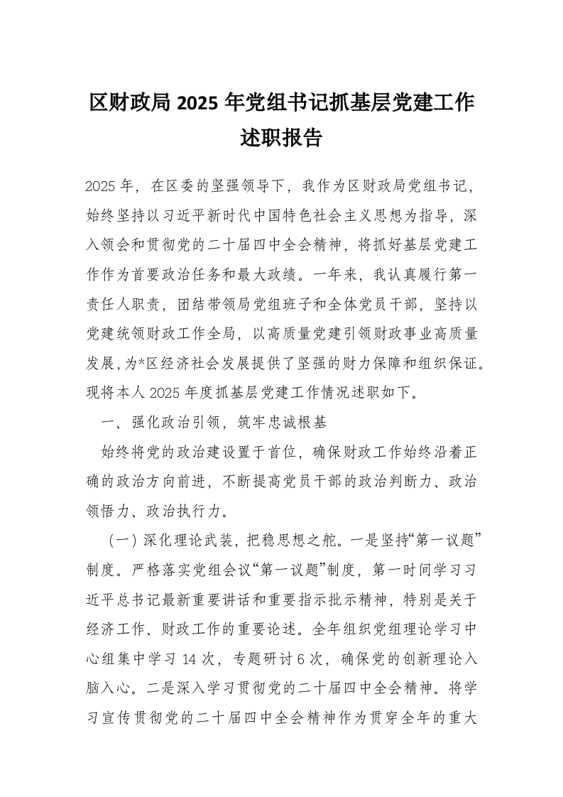 首页工作文档区财政局2025年党组书记抓基层党建工作述职报告