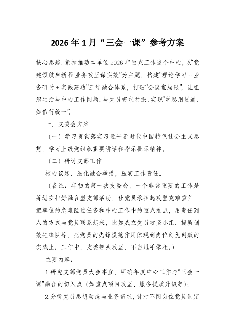 2026年1月“三会一课”参考方案