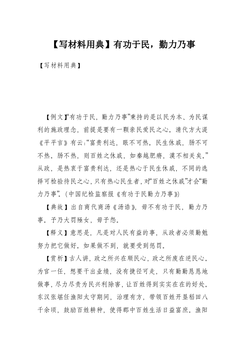 首页每日金句【写材料用典】有功于民,勤力乃事