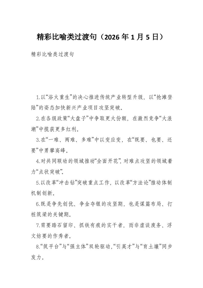 首页每日金句精彩比喻类过渡句(2026年1月5日)