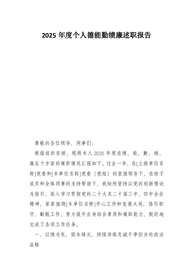首页材料汇编2025年度个人德能勤绩廉述职报告