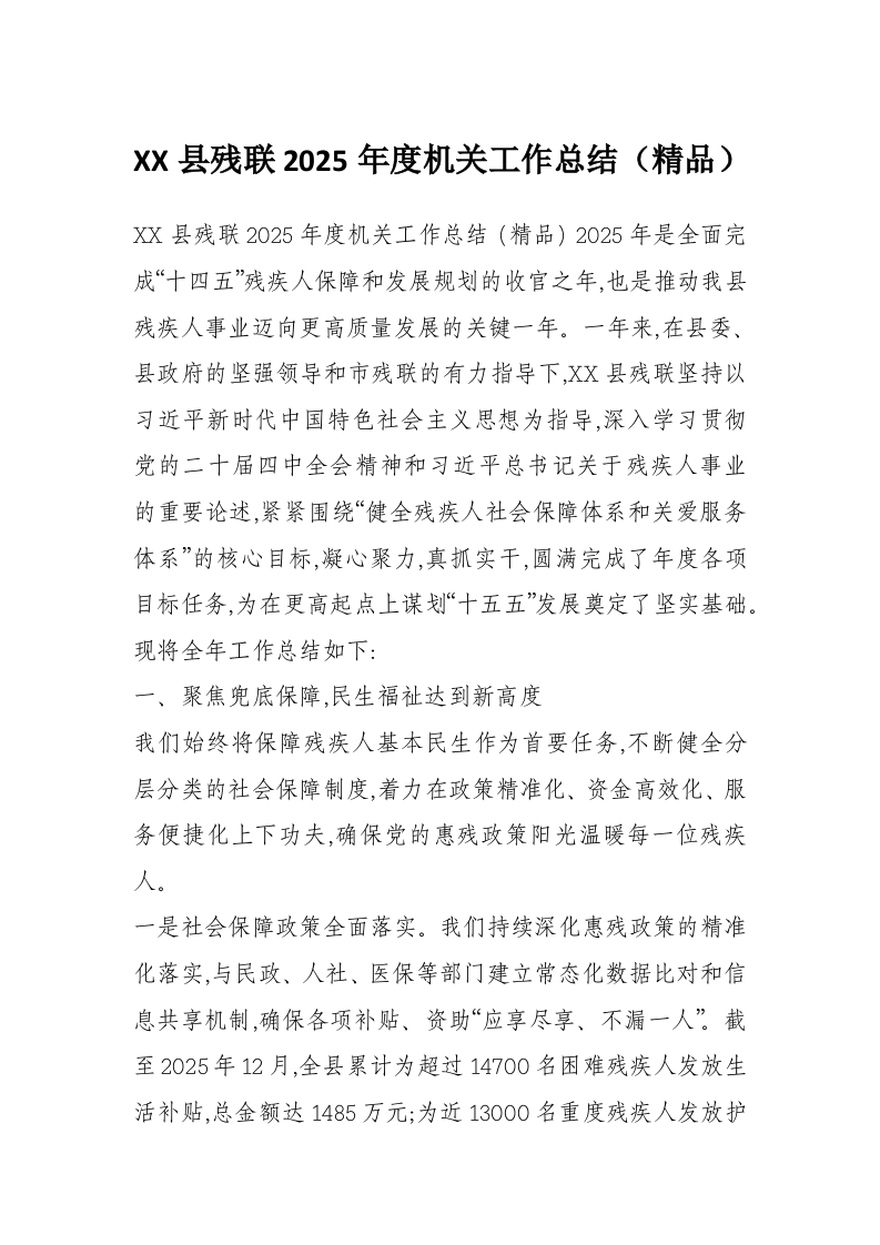 XX县残联2025年度机关工作总结(精品)