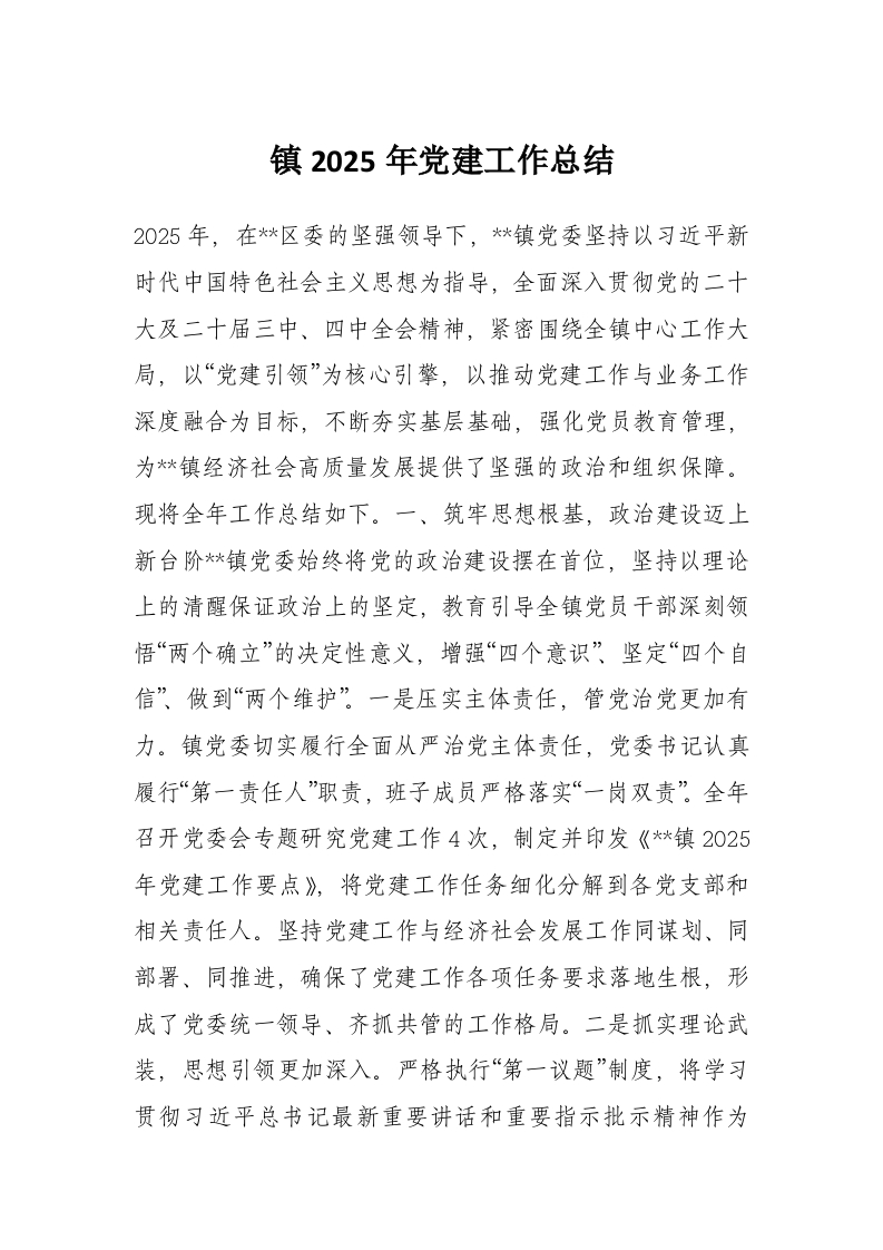 首页工作文档镇2025年党建工作总结