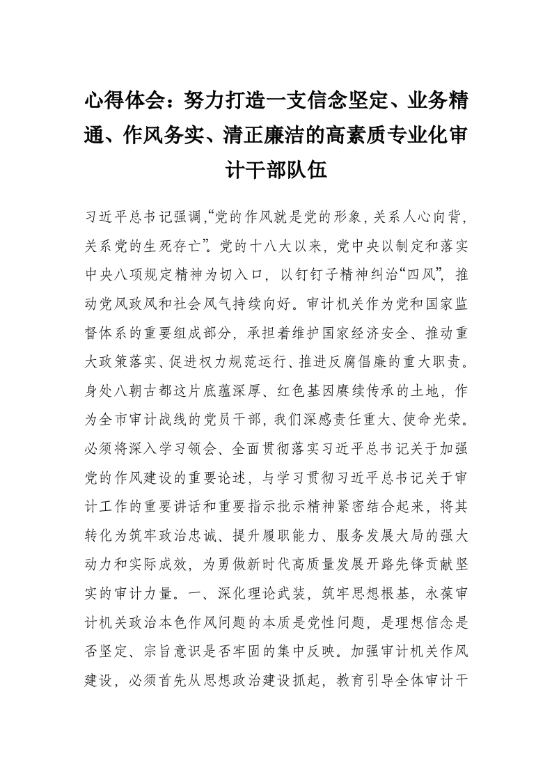 心得体会:努力打造一支信念坚定、业务精通、作风务实、清正廉洁的高素质专业化审计干部队伍