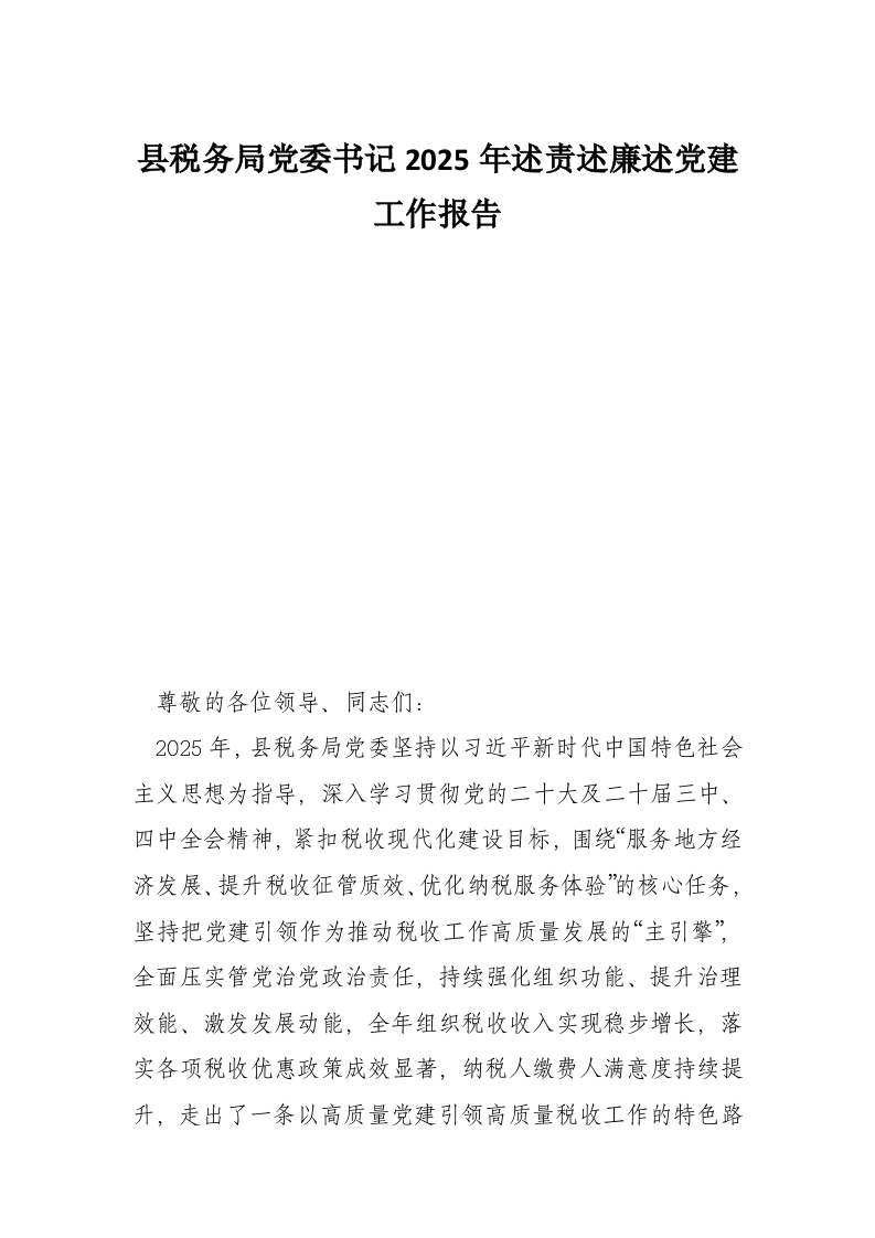 首页工作文档县税务局党委书记2025年述责述廉述党建工作报告