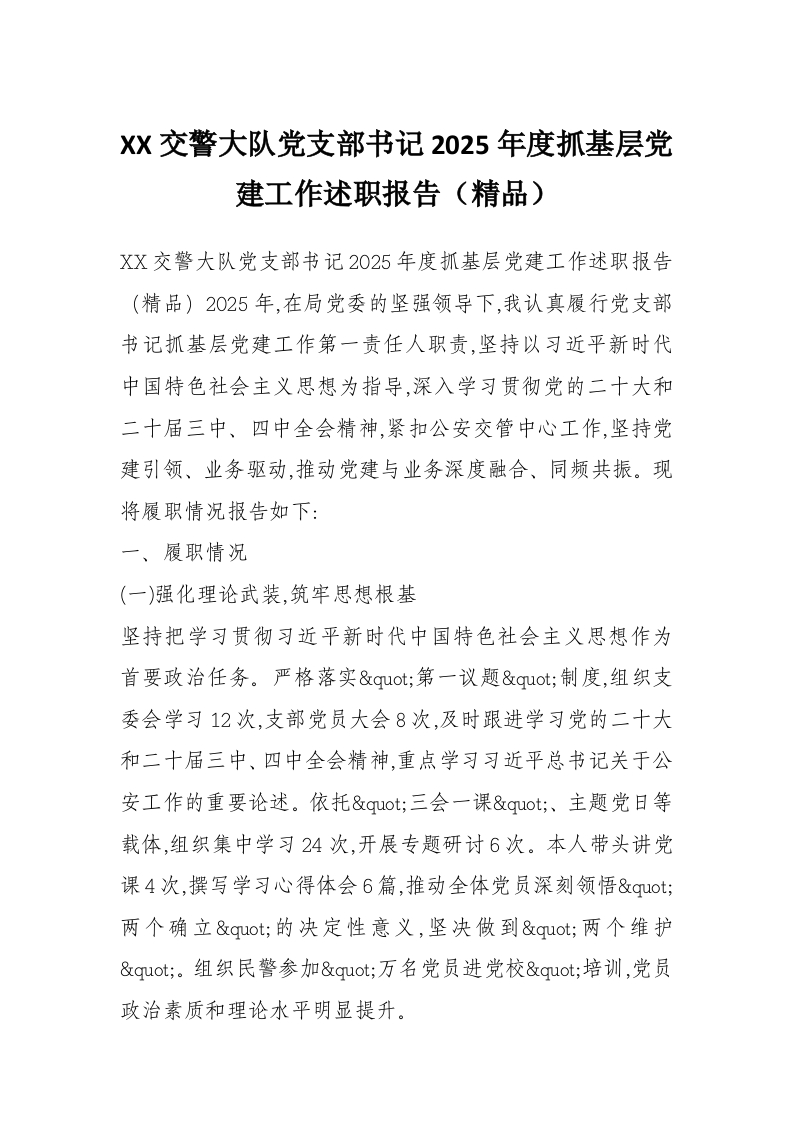 XX交警大队党支部书记2025年度抓基层党建工作述职报告(精品)