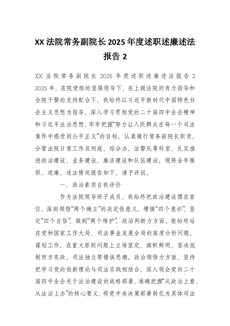 首页写作素材XX法院常务副院长2025年度述职述廉述法报告2