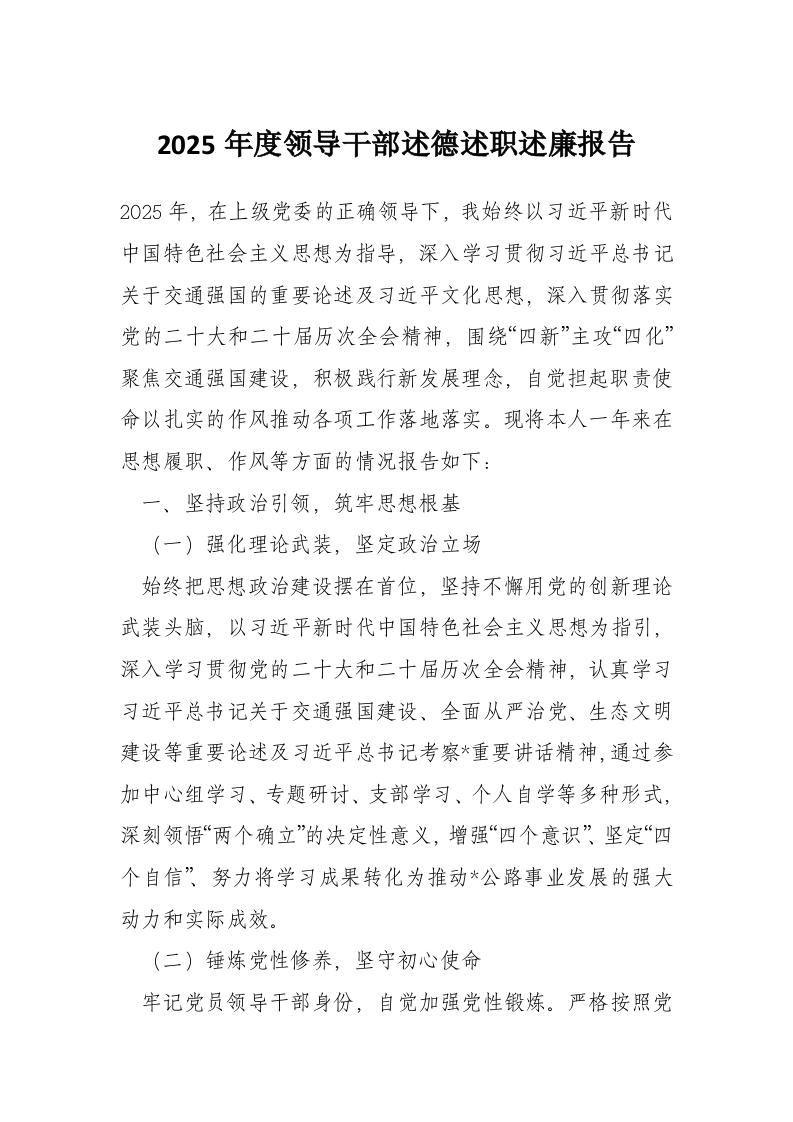 首页材料汇编2025年度领导干部述德述职述廉报告