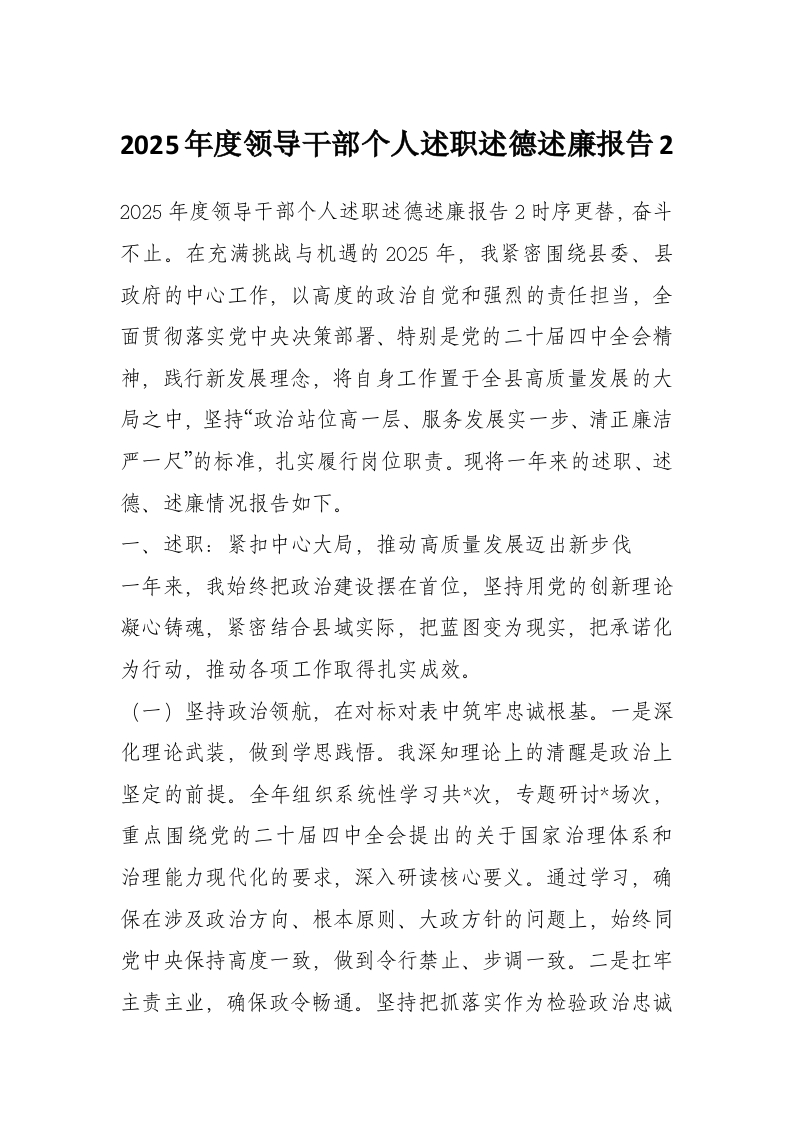 首页材料汇编2025年度领导干部个人述职述德述廉报告2