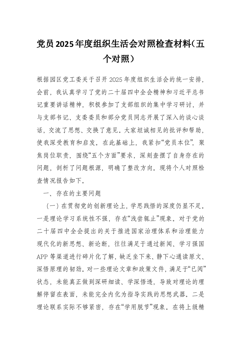 首页材料汇编党员2025年度组织生活会对照检查材料(五个对照)